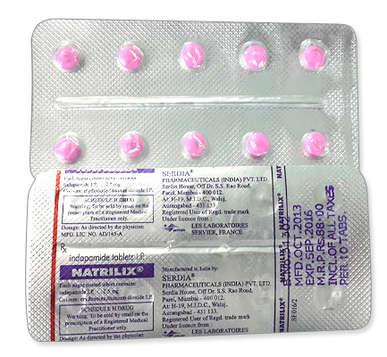 - De gebruikelijke dosis indapamide is 1,5 mg tot 2,5 mg eenmaal daags.