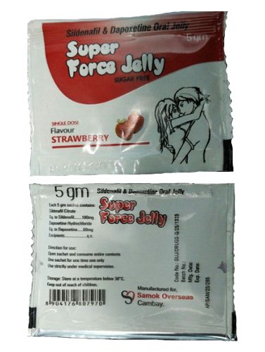 - Super Force Jelly wordt gebruikt voor de behandeling van erectiele disfunctie (ED) en vroegtijdige ejaculatie (PE) bij volwassen mannen. Het medicijn is een combinatie van Sildenafil Citrate en Dapoxetine Hydrochloride, die de bloedstroom naar de penis verhoogt en de tijd tot ejaculatie verlengt.